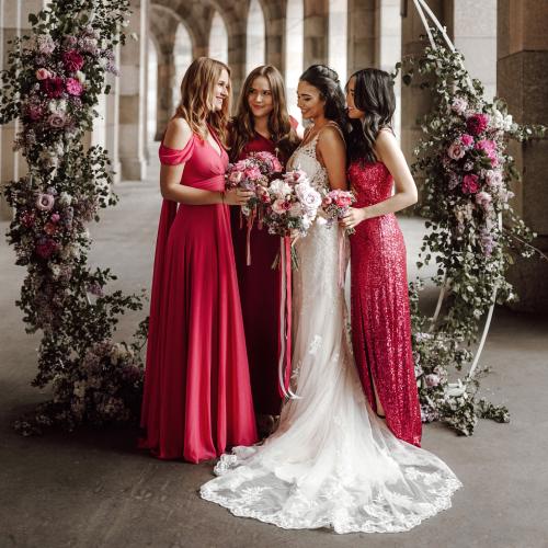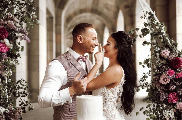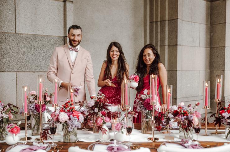 Bei unserem Styled Shooting in Nürnberg stand ein traumhaftes Brautpaar im Mittelpunkt, umgeben von liebevoll gestalteter Deko im Farbkonzept Pink und Bordeaux. Die harmonisch abgestimmten Outfits für Braut, Bräutigam und Hochzeitsgäste rundeten das Gesamtbild perfekt ab. Alle Looks stammen direkt aus dem Hause Murk und zeigen, wie stilvoll sich ein Hochzeitskonzept bis ins Detail umsetzen lässt.